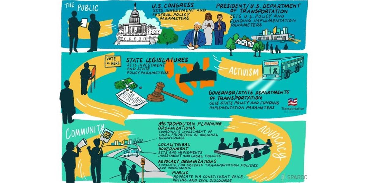 Before diving into the currents within the mobility space and how to navigate them, it is helpful to understand the general policy lever environment. The graphic above succinctly illustrates the varying levels of decision making and influence in policy making.